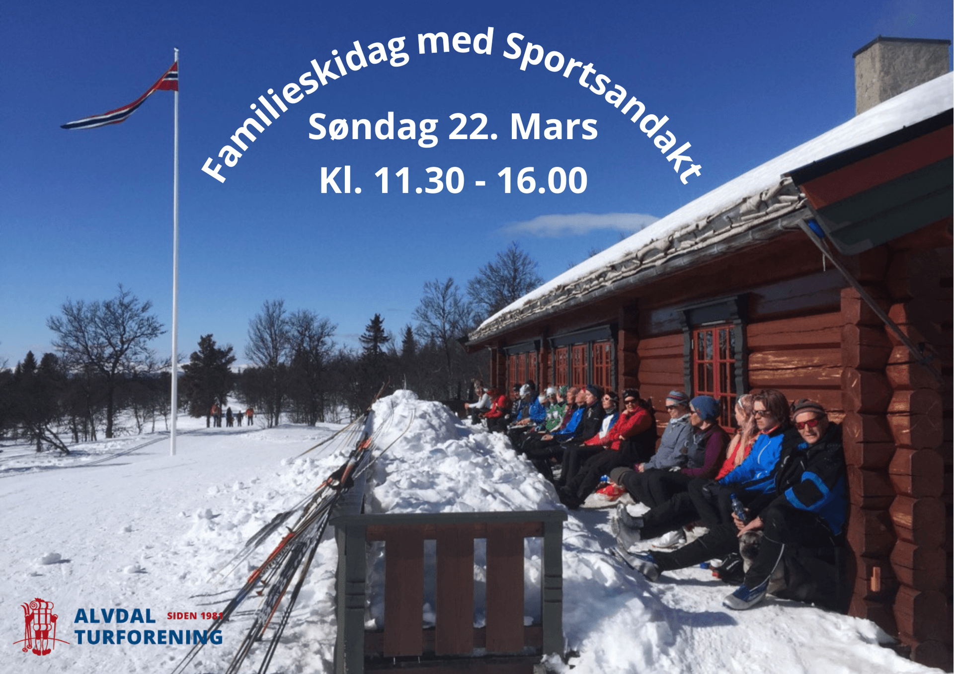 Allmannstua åpen 22. mars Familieskidag med Sportsandakt . kl 11.30 - 16.00