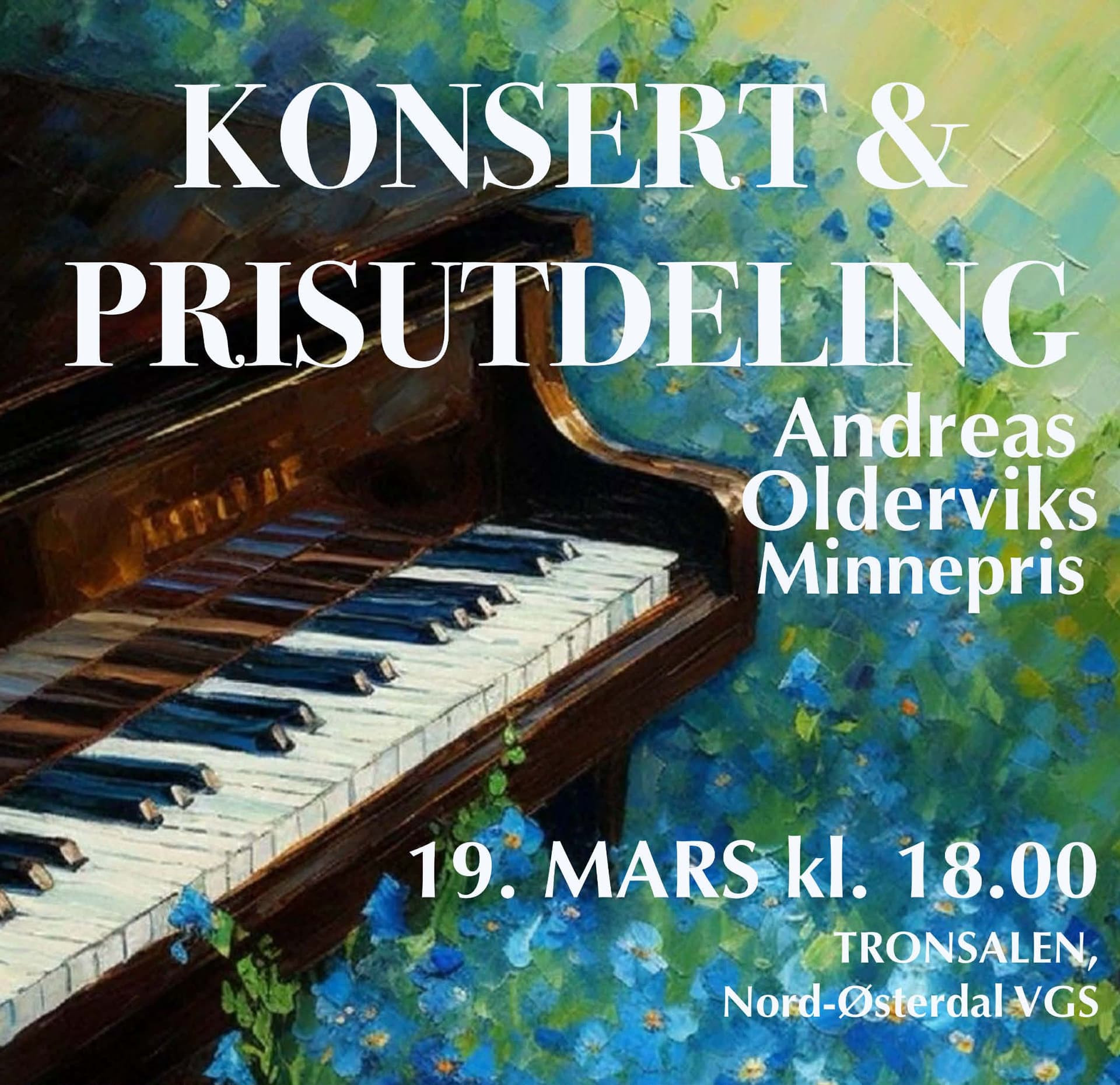 MarkeringAndreas Olderviks minnepris deles ut 19. Mars 2026 i Tronsalen ved Nord-Østerdal videregående skole, med påfølgende konsert med prisvinner og andre bidragsytere.